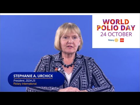 In her World Polio Day message, Rotary International President Stephanie Urchick calls upon the Rotary community to build on our incredible progress, face the challenges ahead with tenacity, and stay focused on our ultimate goal: a polio-free world.